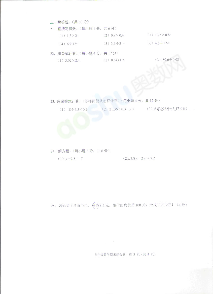 奥数广州站 > 广州小学试题 > 五年级 > 期末试题 > 数学期末试题 > 正文