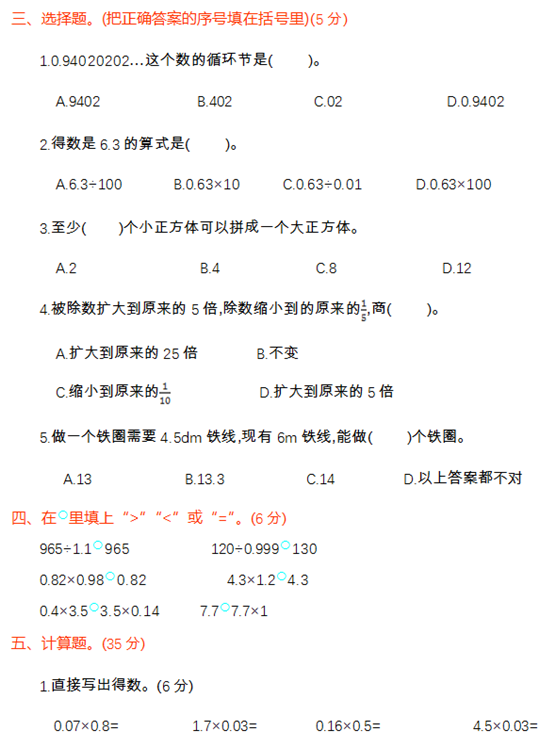 奥数广州站 > 广州小学试题 > 五年级 > 期中试题 > 数学期中试题 > 正文