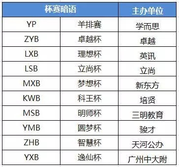 小白认为,要想对杯赛有初步了解,至少要清楚每个杯赛的主办单位,因为大机构参与人数多,杯赛成绩也相对更具有权威性。