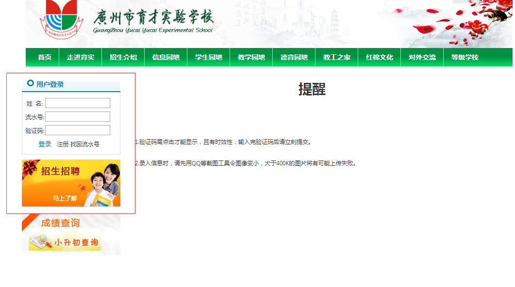 全网首发重磅消息:育才实验官网开放“招生信息录入”,学校官网:http://www.gzycsy.cn/